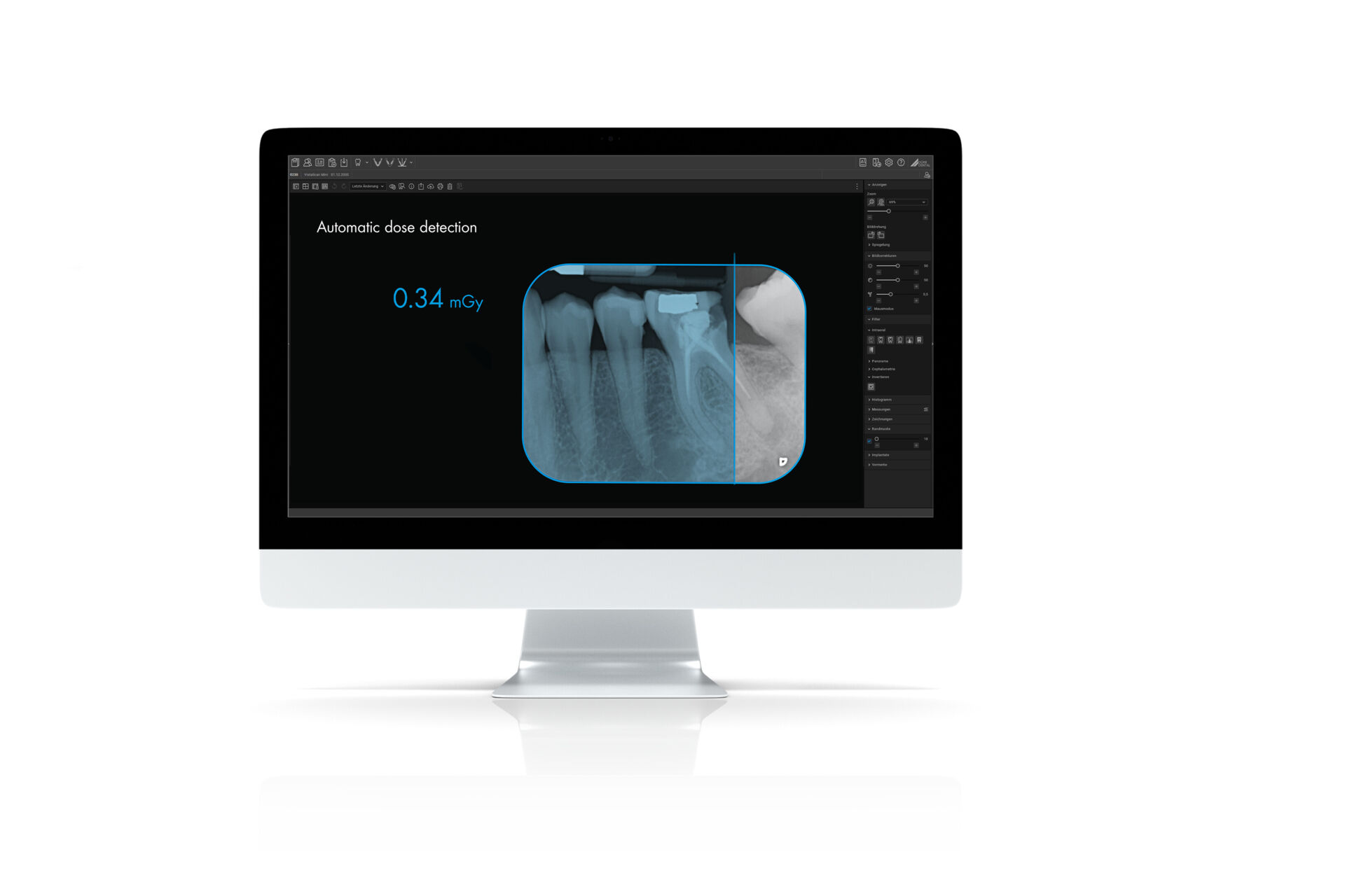 Il couvre l’ensemble des besoins, depuis la radiographie 2D/3D jusqu’aux caméras intra-orales, en passant par l’échange sécurisé via le cloud. L’interface a été pensée pour être « un clic unique » : toutes les fonctions essentielles — acquisition, visualisation, annotation, export — sont accessibles directement, afin d’optimiser le flux de travail clinique.