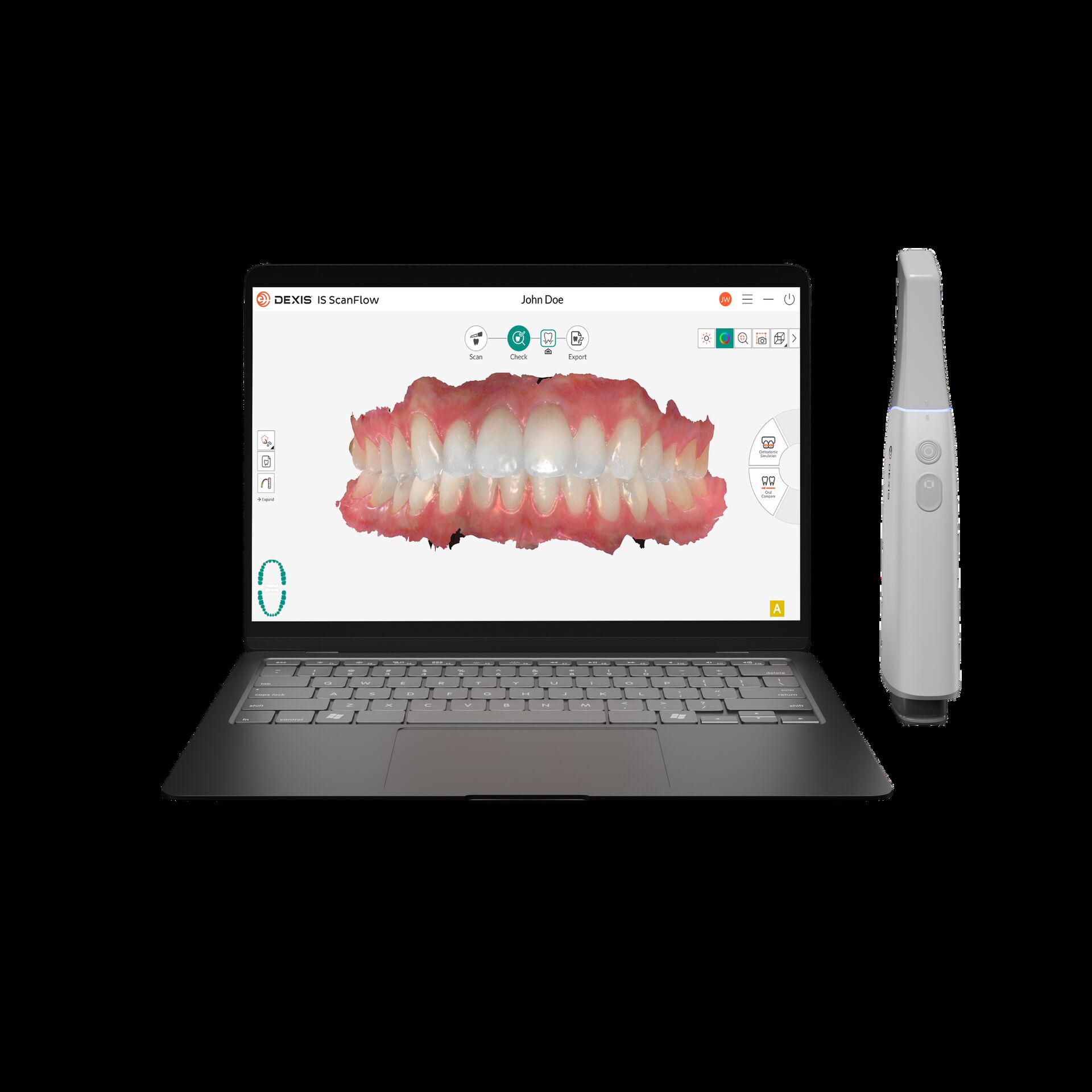 Le scanner s’appuie sur DEXIS IS ScanFlow 2.0, qui propose un flux simplifié : scanner, vérifier, exporter. Cette nouvelle version intègre une vérification de préparation optimisée, un maillage plus fin, une correspondance de scan en un clic et des prescriptions orthodontiques améliorées.